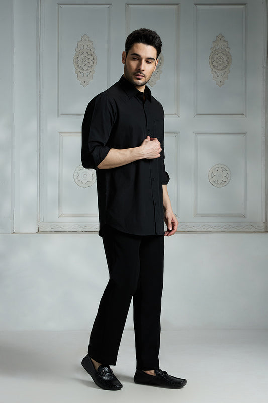 Black Solid Cotton Shirt