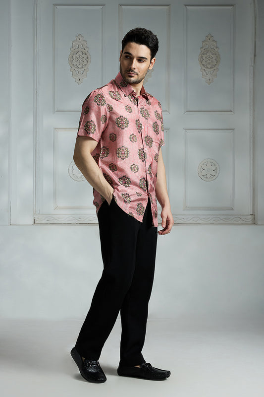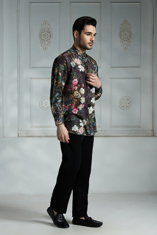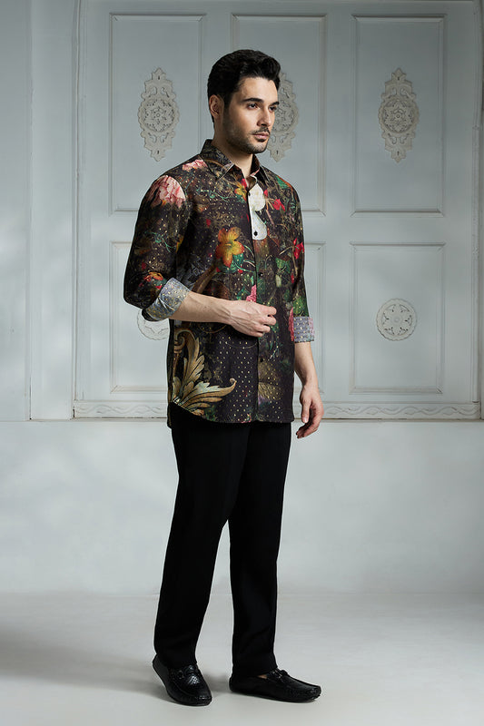 Full Sleeves Floral Printed Silk Shirt