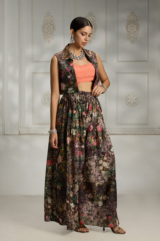 Black Botanical Printed Cape Set