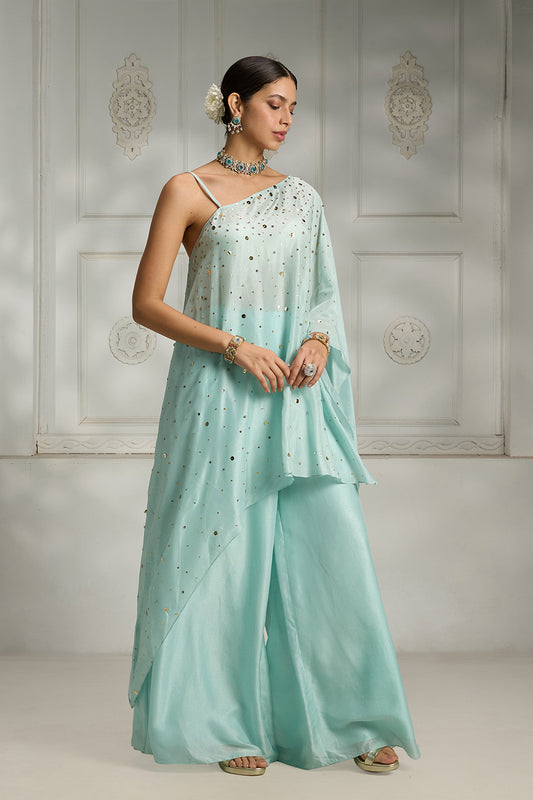 Sky Blue One Shoulder Cape Set