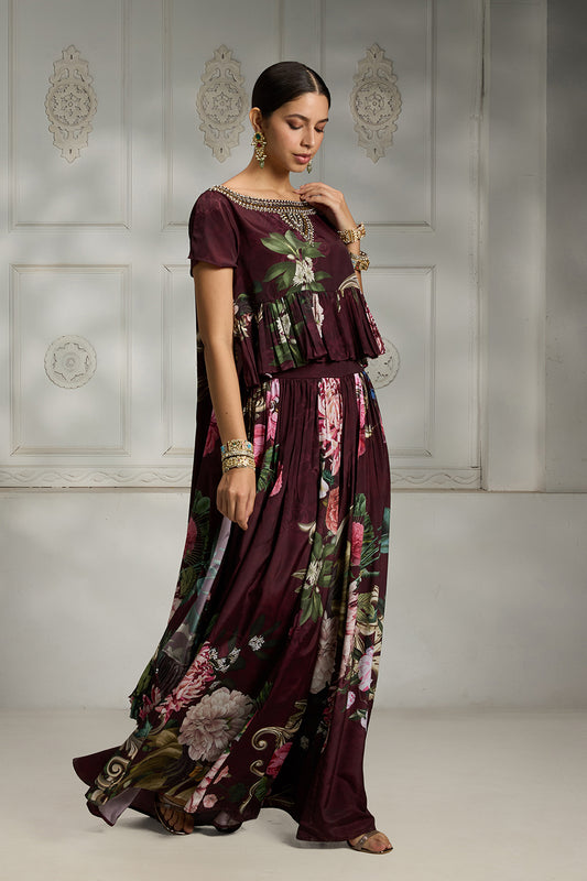 Maroon Printed Cape Set