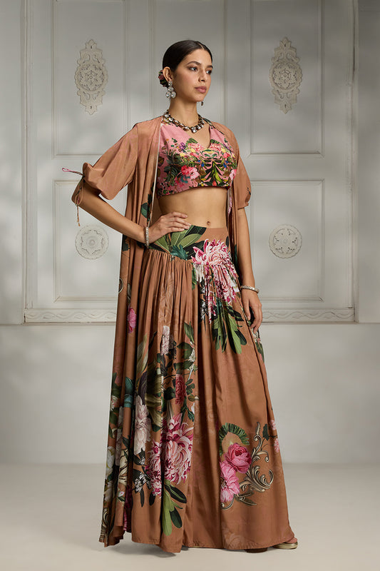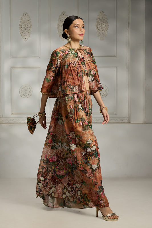 Rust Floral Printed Cape Set