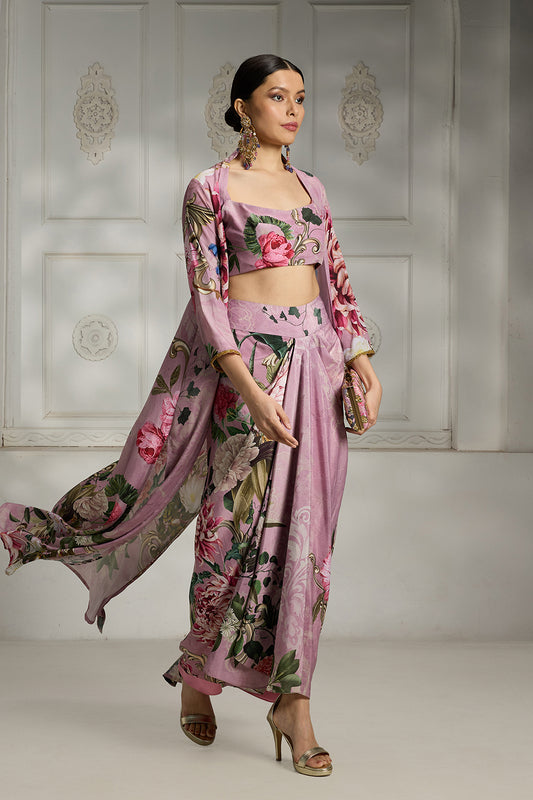 Pink botnical printed cape set