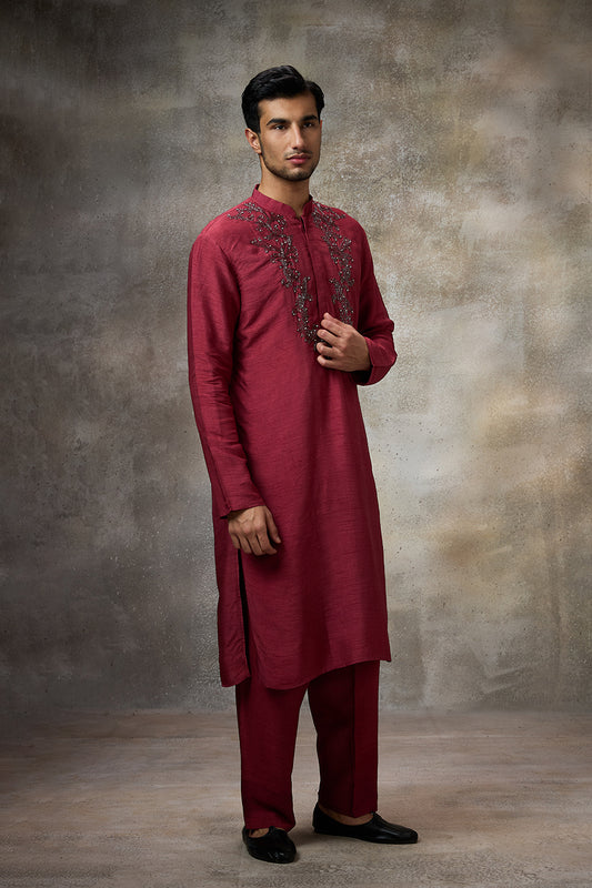 Burgundy Embroidered Kurta Set